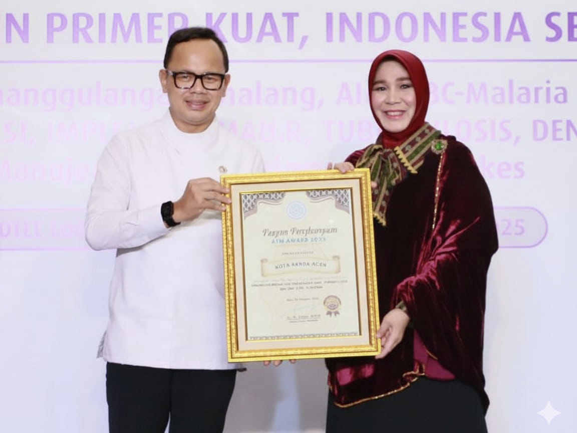 KilasAceh.co – Wali Kota Banda Aceh, Illiza Sa’aduddin Djamal menerima Penghargaan ADINKES Award 2025 dari Asosiasi Dinas Kesehatan Seluruh Indonesia (ADINKES) untuk kategori Penanggulangan AIDS, Tuberkulosis, dan Malaria (ATM).